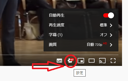 日本語字幕をつけるには右下の設定ボタンをクリックし