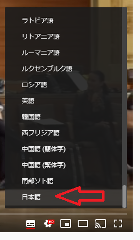画面右下の字幕アイコンをクリックすると字幕をつける事が出来ます。